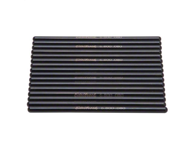 Edelbrock part #9632 Pushrods are designed for small-block Ford 289-302 V-8 engine applications. These one-piece pushrods are manufactured from high quality 4130 Chromoly steel tubing that has been surface hardened for maximum durability. They have precise formed wedged ends for a high quality fit with the cup seats. A black oxide finish is added for corrosion resistance. Pushrod Specifications: - Outside Diameter: 5/16" - Length: 6.800"