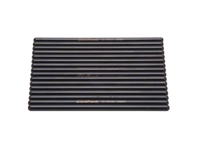 Edelbrock part #9638 Pushrods are designed for Chrysler Magnum 5.2L/5.9L V-8 engine applications. These one-piece pushrods are manufactured from high quality 4130 Chromoly steel tubing that has been surface hardened for maximum durability. They have precise formed wedged ends for a high quality fit with the cup seats. A black oxide finish is added for corrosion resistance. Pushrod Specifications: - Outside Diameter: 5/16" - Length: 6.950"