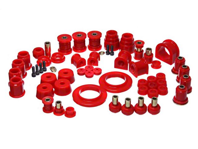 Energy's Hyper-Flex is superior performance polyurethane which has proven itself under the most demanding conditions on the race track, off-road and street performance driving, Hyper-Flex components do not wear or deteriorate from exposure to undercar chemicals such as oils and coolants and withstand atmospheric conditions like UV exposure and pollutants. Impervious to these elements, Energy's Hyper-Flex components are a great value. Not only will it outlast rubber 5 to 1 but are a cost effective performance improvement for your car or truck. Whether domestic or import, front, rear or 4WD, old or new, your vehicle will achieve that level of performance that has made Energy Suspension the most asked-for name in performance polyurethane components. All Hyper-Flex components are proudly Made in America and are available in red or black.