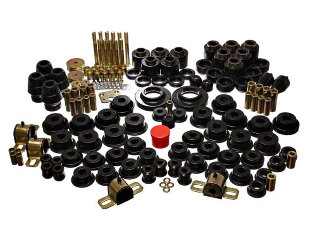 Energy's Hyper-Flex is superior performance polyurethane which has proven itself under the most demanding conditions on the race track, off-road and street performance driving, Hyper-Flex components do not wear or deteriorate from exposure to undercar chemicals such as oils and coolants and withstand atmospheric conditions like UV exposure and pollutants. Impervious to these elements, Energy's Hyper-Flex components are a great value. Not only will it outlast rubber 5 to 1 but are a cost effective performance improvement for your car or truck. Whether domestic or import, front, rear or 4WD, old or new, your vehicle will achieve that level of performance that has made Energy Suspension the most asked-for name in performance polyurethane components. All Hyper-Flex components are proudly Made in America and are available in red or black.