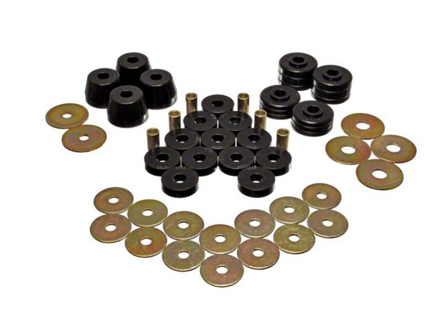 Will replace distorted and worn-out original rubber mounts to maintain car body and truck cab to bed alignment. Original rubber mounts are so soft they often crack, distort, and crush so badly they often fall off. And aluminum body mounts are too harsh for street use that they tend to break and cause other components to break. Energy's specially formulated Hyper-Flex polyurethane cab and body mounts combine the best qualities of both: they're soft enough for a smooth ride, yet rugged enough for the most demanding road or track. Most sets have a strong zinc plated steel ring molded into them - for added durability and when the application requires it.