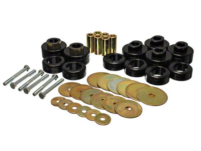 Will replace distorted and worn-out original rubber mounts to maintain car body and truck cab to bed alignment. Original rubber mounts are so soft they often crack, distort, and crush so badly they often fall off. And aluminum body mounts are too harsh for street use that they tend to break and cause other components to break. Energy's specially formulated Hyper-Flex polyurethane cab and body mounts combine the best qualities of both: they're soft enough for a smooth ride, yet rugged enough for the most demanding road or track. Most sets have a strong zinc plated steel ring molded into them - for added durability and when the application requires it.