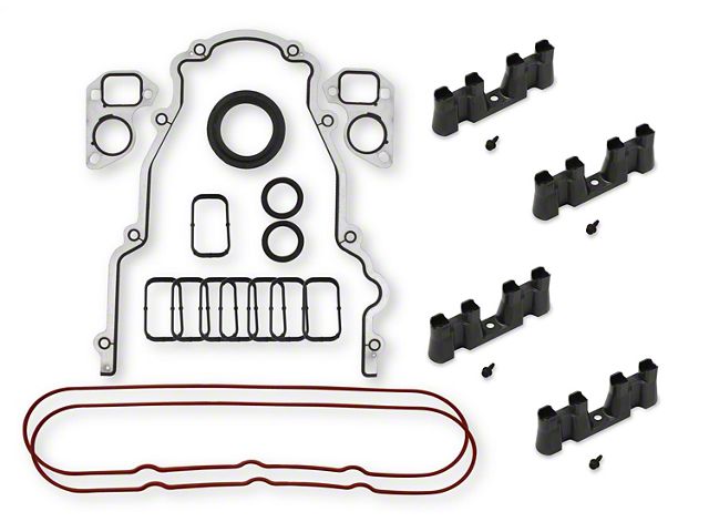 When you change a cam, you don't need a complete engine gasket set, because you don't have to take everything apart. Mr. Gasket cam change gasket sets are tailored to deliver just the pieces that you need when you swap bump-sticks. They include gaskets for the valve covers, intake manifold, oil pan, water pump, timing-chain cover, and fuel pump.