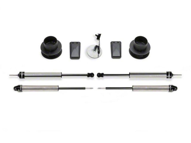This 2.5" Ram lift kit has been designed to help level the vehicle while keeping the stock ride quality. It's perfect for Ram owners looking for a mild lift to clear 35" tall tires. The factory front Ram coil springs have a purpose built bow in them to aid in vehicle stabilization and handling. Fabtech's exclusive front coil spacers retain the factory coil seat angle and spring bow for stock like ride characteristics. The front shocks are replaced with longer length units to allow for full suspension travel while improving the damping of the Ram suspension. Extended length bump stops are included in this kit to prevent the coils from bind at full compression while eliminating Track Bar interference. The Dirt Logic shocks in this Ram lift kit provide a superior ride quality both on and offroad with excellent damping for offroad use. This is a great 2.5" lift kit for Ram 2500 owners looking to level their truck and keep the stock ride. FEATURES: Angled Coil Spacers retain proper factory coil bow for handling. Replacement shocks allow for full travel with increased damping. Extended length bump stops eliminate coil bind and track bar interference. Comes with free 5 year 60,000 Mile Powertrain Warranty