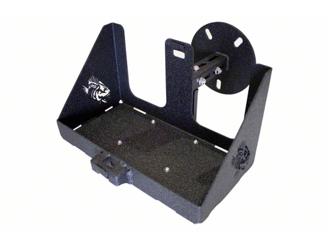 Easily carry your Jerrycan on any Jeep with a Tailgate Mounted Tire Carrier. Fits various bolt patterns, mounts to factory spare tire carriers. Includes a 7 ft. black nylon ratchet strap and stainless steel hardware for adjustable and easy installation.