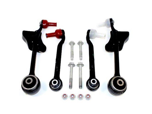 These front lower control arm kits enable the owners of Ford vehicles to upgrade them with low-friction ball joints and improved inner bushings. They feature a higher quality nylon bearing that dramatically improves impact harshness, resulting in a better ride. These kits are recommended when heavy-duty suspension components are added. They include left and right lower control arm assemblies, cotter pins, and instructions.