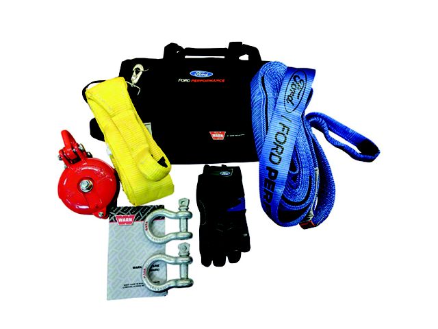Don't get stuck off-road without the essentials; this heavy duty, Ford Performance by WARN Industries Recovery Kit is designed to assist in the recovery of a vehicle stuck in mud, sand, or snow. This comprehensive recovery kit is sure to complement your off-road adventure in any 4x4 vehicle. Kit is for use with w inches up to 12,000 lb. capacities. For standard duty kit see M-1830-FPORR.