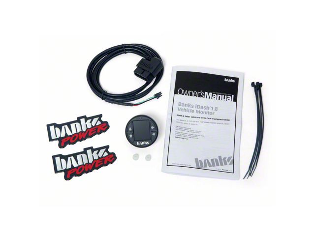 Banks iDash is the smallest, most powerful plug-n-play OBD-II monitor and control interface on the market. With its easy-to-read 2- to 8-gauge user-selectable LCD display, the iDash reads a multitude of engine parameters and internal data directly from the vehicles ECM via OBD-II. It also opens a whole new world of Banks exclusive calculated parameters not available on any other device. Set custom low and high alerts for any engine parameter. Monitor max and min values for a user-selectable list of parameters. Read and clear trouble codes on-the-fly. Customize the navigation button and LCD display colors, brightness, and even the rate at which they dim at night. Daisy chain 4 iDash gauges and view up to 32 parameters simultaneously. Add Banks sensor modules such as the 4-channel analog module, 4-channel thermocouple module, and AirMouse Ambient Air Density Module for nearly infinite vehicle and weather analysis. Expand functionality with Banks Modules (Pressure/Temp Sensors, and more).