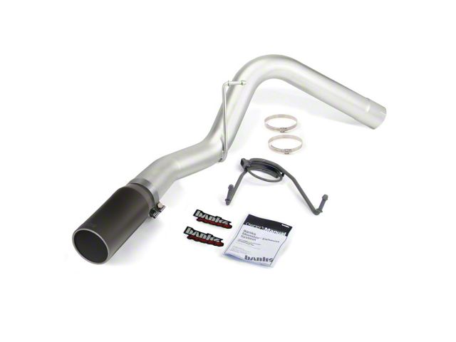 The 4 inch intermediate pipe and tailpipes are formed of stainless heavy-wall tubing with mandrel bends to maximize airflow, minimize backpressure and lower exhaust gas temperatures. The system safely clears the spare tire, shocks and brake lines. Monster duals include exclusive 6 X 5 inch ob-round (patented design) polished-stainless angle-cut rolled-edge tailpipe tips (with your choice of high temp Black or chrome-over stainless), while Monster singles include a 5 inch round tip. Adjustable clamp for positioning on tailpipe. And to help keep the tips looking good, there's a 1/2 inch air gap to keep heat from tarnishing the finish. Monster Exhaust System, Single Exit, Black Tip for use with 2007-2013 Dodge/Ram 6.7L, SCLB-MCSB Standard Cab Long Bed to Mega Cab Short Bed.