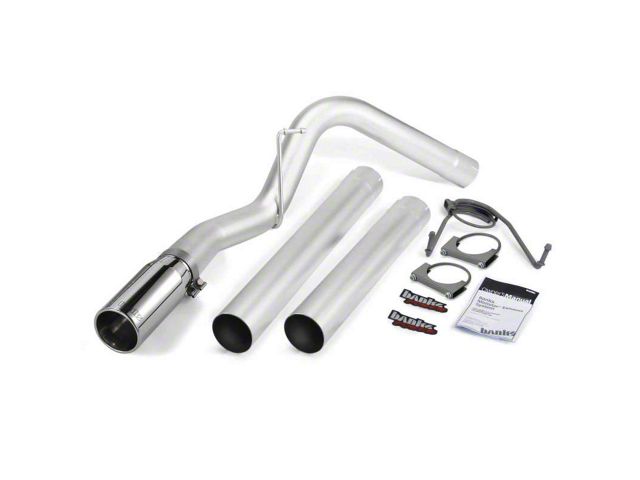 The 4 inch intermediate pipe and tailpipes are formed of stainless heavy-wall tubing with mandrel bends to maximize airflow, minimize backpressure and lower exhaust exit temperatures. The system safely clears the spare tire, shocks and brake lines. Monster singles include a 5 inch round tip (with your choice of high temp Black or chrome-over stainless). Adjustable clamp for positioning on tailpipe. (And to help keep the tips looking good, there's a 1/2 inch air gap to keep heat from tarnishing the finish.). Banks Monster Exhaust for the 6.7L is available in the following configurations (not all configurations are available for all year ranges). The side single exhaust for 2014 does not include an intermediate pipe.