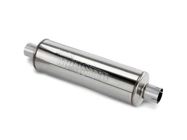 Straight-through flow path. Exclusive expansion chamber dissipates annoying mid-range drone. Flows up to 201% better than stock. Authoritative, but never overpowering, exhaust sound. Polished-stainless steel. 3.5 inch diameter in/out.