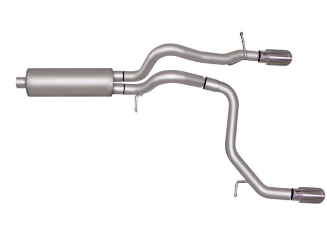 For the enthusiast who wants an awesome look and aggressive throaty sound this Dual Split Cat back exhaust is for you. Gibson Exhaust Systems decrease backpressure and produce more torque and increased horsepower. Typical gains average of 15-20 horsepower. Stainless dual Tip exit straight out the back. Works with most bumpers, roll pans and trailer hitches. Exhaust sound is louder under towing conditions. Hassle Free bolt- on installation. No welding required. Backed by a Lifetime Limited Warranty.