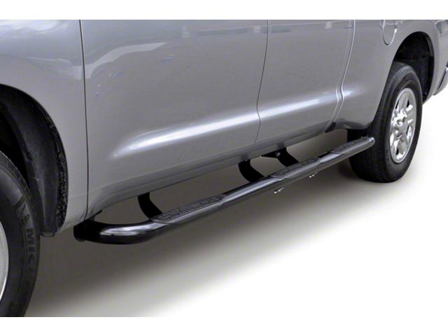Modular wheel-to-wheel Side Steps. Custom designed for each application. 3rd step pad offers easy access to bed or tool box. Non-slip step pads allow easier, safer entry and exit. Smooth 90deg front bend and 30deg rear bend offers a unique look.
