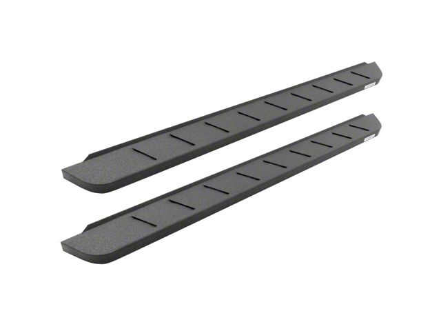 The legendary RB Series of cab length running boards from Go Rhino will make your truck, Jeep or SUV stand apart from the crowd. With an aggressive, yet stylish appearance, these bolt-on side steps take their visual inspiration from the Ford Raptor but are made for more than just looks. The RB10 running boards features a generous step area with Raptor-style louvers for maximum traction when entering and exiting your vehicle. The corrosion-resistant 16-gauge zinc coated steel steps are mounted high and tight, giving them plenty of clearance for off-road adventures, and are strong enough to support hundreds of pounds of weight. The welded, boxed end design is offered in two finishes: textured black powder coat or rugged, bedliner coating. RB10 Running Boards come with a Limited Lifetime warranty on materials and construction and a 5 year warranty on the Bedliner finish.