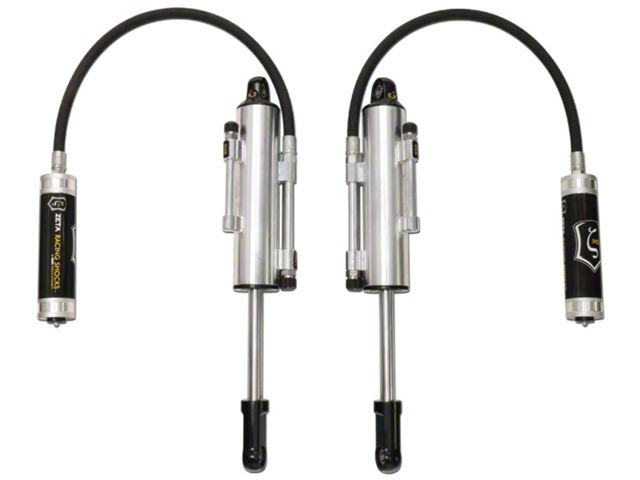 The ICON Ford SVT Raptor Secondary Front Shocks are a three tube External Bypass shock with remote reservoir. These are far from the norm when compared to a traditional bypass shock you see on Trophy Trucks and other off-road race vehicles. Each bypass valve has a specific port design and individually equipped with a different spring rate to ensure proper performance at each zone of shock travel. These same bypass valves feature damped valve seats for quiet and precise operation. That means no clicking noises as you hit bumps or road chatter driving down the road. The biggest difference in these shocks versus an industry standard bypass shock, are the "Easy-to-Adjust" knobs and the replaceable bypass tubes. The "Easy to Adjust" Hi Resolution Clicker Knobs do not require any tools for adjustment, and can be adjusted in seconds for thedemand of the terrain you will be facing. Another unique feature of this shock is the replaceable bypass tubes that can be swapped out during a standard rebuild if any damage were to occur, where a normal bypass shock body would need to be completely replaced, saving you hundreds of dollars.