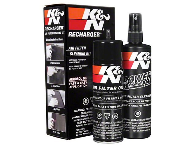 K&N Recharger Kit 99-5000 is designed to restore the performance of your K&N oiled cotton air filter, and includes a 6.5-ounce aerosol can of oil and a 12-ounce spray bottle of POWER KLEEN. POWER KLEEN industrial strength degreaser helps dissolve dirt, old filter oil, and other filter-clogging particulates, allowing them to be rinsed away easily with water. When used as directed, the included air filter oil remains suspended in the pleats of the cotton filter material, allowing for exceptional contaminant capture. View the complete cleaning instructions included in your kit.