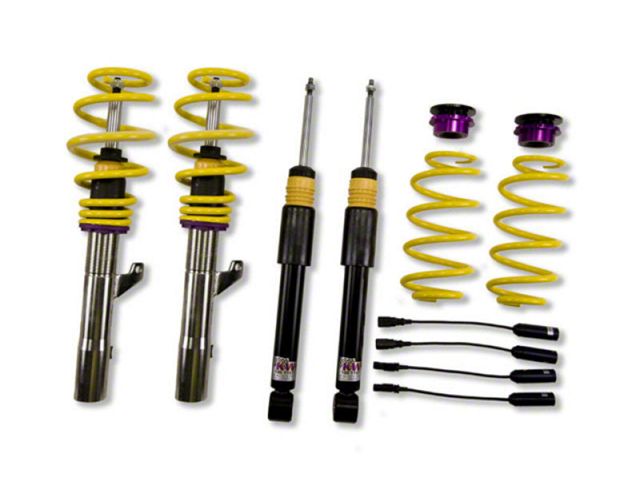 KW Variant 2 INOX-LINE coilovers are the perfect solution for drivers who want more than just outstanding looks and adjustable ride height. In addition to stainless steel coilover struts, and corrosion-resistant components built for long term durability, KW Variant 2 coilovers utilize TVR-A (Twin Valve Rebound - Adjustable) technology to allow adjustment of the rebound damping characteristics with 16 clicks so you can fine-tune the ride comfort or performance to your satisfaction.