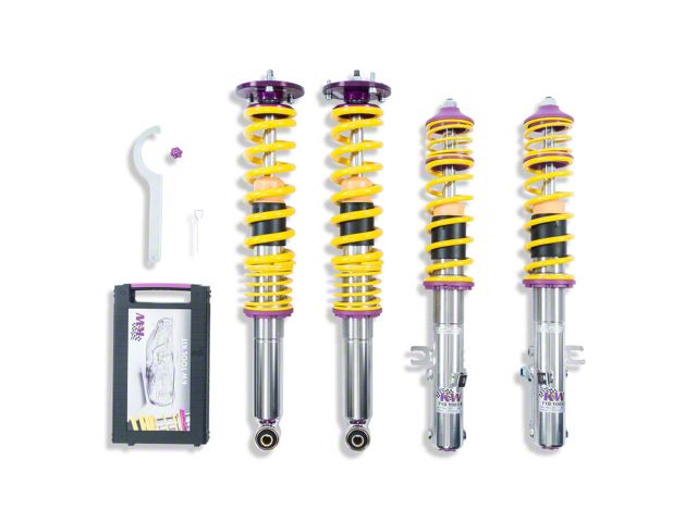 The KW Variant 3 INOX-LINE coilover kit is the ideal tool for performance-oriented drivers and experienced tuning enthusiasts who place a strong emphasis on the overall performance of their suspension. The Variant 3 features patented TVR-A and TVC-A technology that provides separately adjustable rebound and compression damping. The extensive adjustment range of the independently configurable rebound and compression makes it easy to directly influence the steering behavior, directional stability, grip, and handling characteristics for confident and repeatable results at the limit of driving dynamics.