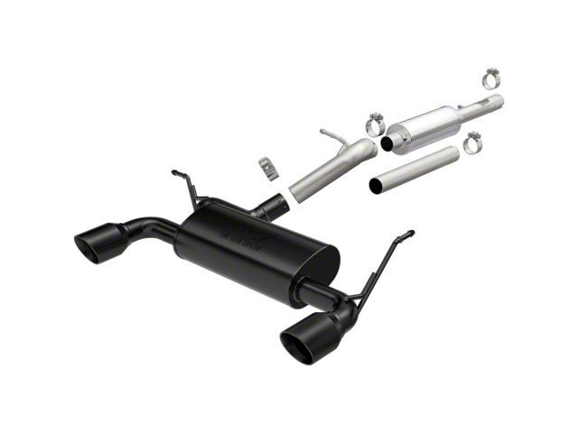 The MagnaFlow 2018-2024 Jeep Wrangler Street Series Cat-Back Performance Exhaust System 19417 brings out the personality of your 3.6L 2018-2024 Jeep Wrangler with our signature resonant, powerful engine tone and dyno-proven performance. Thanks to its fast-flowing, mandrel bent 2.5in. main piping and 2 Straight-Through mufflers ending in a Dual Split Rear exit with 4in. Black Coated Welded-On Double Wall Angle Cut Folded Edge tips, this Jeep Wrangler exhaust kit has the performance chops to match its sporty sound and appearance. Upgrade your ride to the next level with an exhaust that has the pipes to put other Jeep Wrangler's to shame. With this system your vehicle will be producing Moderate exterior and Mild interior sound levels while leaving other cars and trucks feeling envious at every stoplight. Exhaust kit 19417 features a cat-back layout that replaces your ride's stock exhaust components from near the catalytic converter on back. Extensive 3D scanning during development has resulted in a direct-fit design that you can easily install yourself. 19417 is produced using CNC precision robotic manufacturing techniques and is backed by MagnaFlow's 1-year limited finish warranty and limited lifetime construction warranty.