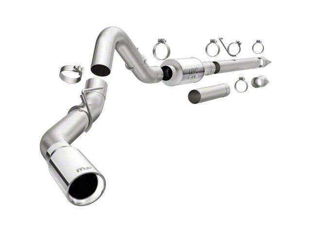 The MagnaFlow Street Series Cat-Back Performance Exhaust System #19577 for all 2015-2023 Ford F-150s offers a straightforward way to enhance the sound and performance of your truck with MagnaFlow's deep signature sound and dyno-proven performance. This MagnaFlow exhaust kit features 4" mandrel bent tubing, a single straight-through muffler and single passenger-side exit with 5" polished tip. MagnaFlow #19577 is engineered to produce a moderate level of sound on the exterior and mild, well-mannered sound volume in the interior. The quality construction of this Ford F-150 exhaust system is thanks to the durable stainless-steel material it is made of, as well as the cutting-edge CNC precision robotic manufacturing techniques that were utilized to produce it. Each exhaust kit is covered by a limited lifetime construction warranty.
