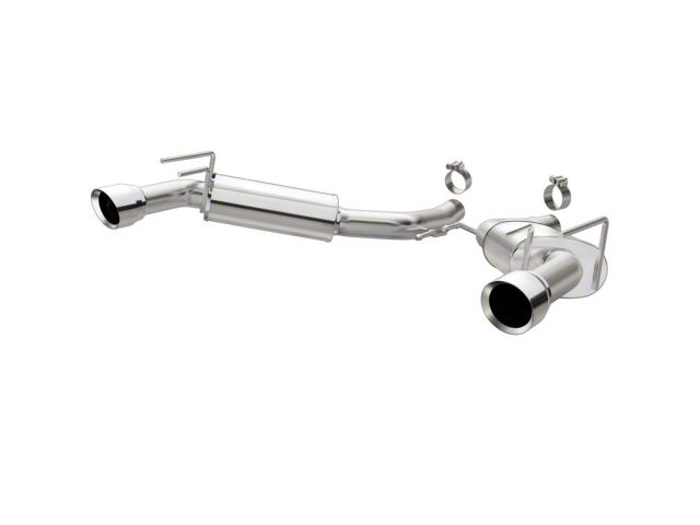 The MagnaFlow 2014-2015 Chevrolet Camaro Street Series Axle-Back Performance Exhaust System 19185 brings enhanced engine sound and dyno-proven performance to your 6.2L 2014-2015 Chevrolet Camaro with a healthy helping of our deep, resonant signature exhaust note at Moderate exterior and Mild interior sound levels. Thanks to its durable, corrosion resistant stainless steel design, this Chevrolet Camaro exhaust system will handle whatever tarmac you decide to leave your mark on. This performance exhaust kit features an axle-back layout designed to replace your Chevrolet Camaro's exhaust system from near the rear axle on back. With its fast-flowing, mandrel bent 3in. main piping and 2 Straight-Through mufflers ending in a Dual Split Rear exit with 4.5in. Polished Welded-On Double Wall Angle Cut Folded Edge tips, your ride will be sounding as awesome as it looks. Extensive 3D scanning during development has resulted in a direct-fit design that you can easily install yourself. 19185 is produced using CNC precision robotic manufacturing techniques and is backed by MagnaFlow's 1-year limited finish warranty and limited lifetime construction warranty.
