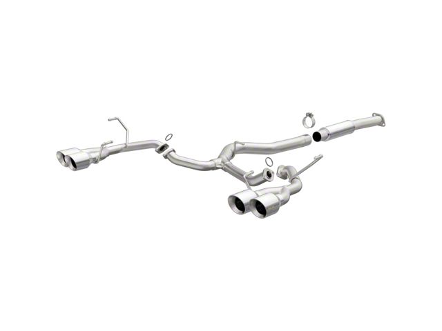 The MagnaFlow Competition Series Cat-Back Performance Exhaust System 19361 brings an aggressive, attention-grabbing edge to the deep resonant exhaust note we're so well known for. This exhaust kit is designed to enhance your 2.0L, 2.5L 2011-2018 Subaru with dyno-proven performance made possible thanks to fast-flowing mandrel bent 3in. main piping and 1 Straight-Through mufflers ending in a Quad Split Rear exit with 4in. Polished Welded-On Double Wall Angle Cut Folded Edge tips featuring a sporty finish. The exhaust system's cat-back layout replaces your ride's exhaust system from near the catalytic converter on back. Exhaust system 19361 is engineered to make your vehicle's engine produce Aggressive exterior and Moderate interior sound levels, befitting its competition-oriented design. 19361's direct-fit design makes installation a breeze thanks to the use of advanced 3D scanning techniques. This performance exhaust system is made of 100% durable and corrosion-resistant stainless steel and produced using CNC precision robotic manufacturing, all backed by MagnaFlow's limited lifetime warranty. Please check to ensure compliance with local noise regulations.