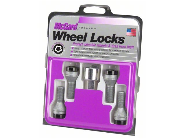 Protecting the world's finest wheels and tires from theft since 1964. Wheel Lock bolts are designed in USA and manufactured in EU and USA. Presently, McGard is an Original Equipment wheel lock supplier to most automobile brands around the world. These easy-to-use wheel locks function like regular lug bolts, but require a special key tool for installation and removal. The steel collar on the user friendly key guides the key into the lock pattern. The collar holds the key in alignment for easy installation and removal. The computer generated key designs allow for an infinite number of key patterns. The extra narrow pattern groove on the lock resists the intrusion of removal tools into the pattern. Every McGard wheel lock utilizes fully machined, restricted chemistry steel made specifically for McGard and through-hardened for its unsurpassed level of security. McGard's plating process includes several layers of nickel and one layer of microporous chrome with black PVD producing a superior finish while protecting against rust. The bolt stem has a dacromet coating to meet O.E.M. standards. For use with steel or aluminum wheels with a tapered seat. Matching Lug Bolts are available in Installation Kits and Bulk Boxes of 50. This product contains globally sourced materials/components.
