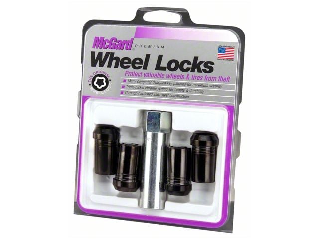 Protecting the world's finest wheels and tires from theft since 1964. McGard manufactures wheel locks in the USA to meet or exceed O.E.M. standards for safety and durability. Presently, McGard is an Original Equipment wheel lock supplier to most automobile brands around the world. These easy-to-use, one-piece wheel locks function like regular lug nuts, but require a special key tool for installation and removal. The steel collar on the user friendly key guides the key into the lock pattern. The collar holds the key in alignment for easy installation and removal. The computer generated key designs allow for an infinite number of key patterns. The extra narrow pattern groove on the lock resists the intrusion of removal tools into the pattern. Every McGard wheel lock is fully machined from restricted chemistry steel made specifically for McGard and through-hardened for its unsurpassed level of security. McGard's plating process includes several layers of nickel and one layer of microporous chrome with black PVD producing a superior finish while protecting against rust. For use on Tuner wheels or wheels with very small lug nut holes. For aluminum wheels only. This product may contain globally sourced materials/components.