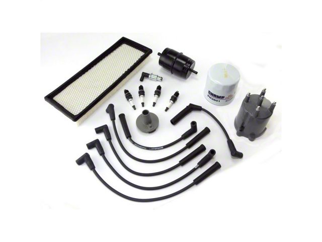If your Jeep is not running as smooth as it once did, it may be time for a tune-up! Omix has all the necessary high-quality parts to restore the performance to your engine- parts built to meet or exceed factory standards. This ignition tune-up kit fits 87-90 Wrangler YJ 2.5 liter models and includes new oil filter, air filter, fuel filter, ignition wire set, distributor cap, rotor, spark plug set and PCV valve.