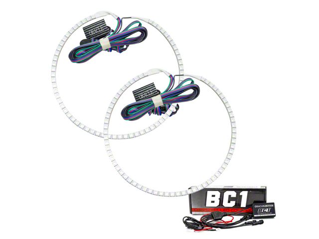 The ColorSHIFT Halo Kit can produce any color including whites from 3000K-15000K with the push of a button. This allows the user to dial-in the exact color rings that they desire. These 3-Chip 5050 SMD rings are BRIGHT, and for some they may be too bright, that is why (for the first time) the user has full control over the ring brightness. ORACLE SMD or "Surface Mount Diode" Halos utilize an advanced type of LED chip that can produce brilliant light output while only consuming a small amount of power. The SMD chips are installed onto a CAD designed 6-layer PCB (Printed Circuit Board) which is very sturdy and will not break if pressured. The PCB can easily be mounted to a headlight housing using the pre-installed 3M adhesive tape backing. The new BC1 ColorSHIFT controller is a robust and rugged Bluetooth option that is easy to install and a low price. Perfect for adding ORACLE ColorSHIFT products to your vehicle, simply connect power and ground then connect your smartphone through the free app to control. The controller features 4 outputs with waterproof connections for easy wiring to your ColorSHIFT lighting products. Through the app you can turn your lights on and off, select from millions of color variations, control patterns, brightness, strobe function, and even control the lights with music