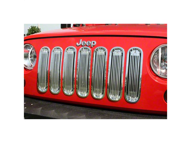 Durable UV treated inserts enhance the front of your Jeep. Available in your choice of Black or Chrome with or without aluminum billet inserts, These inserts add great styling and a unique appearance. All Rugged Ridge inserts easily install without drilling or tools. Just click them in and go! Add on the black or stainless Euro-Guards or black headlight bezels for the sharpest look on the market!
