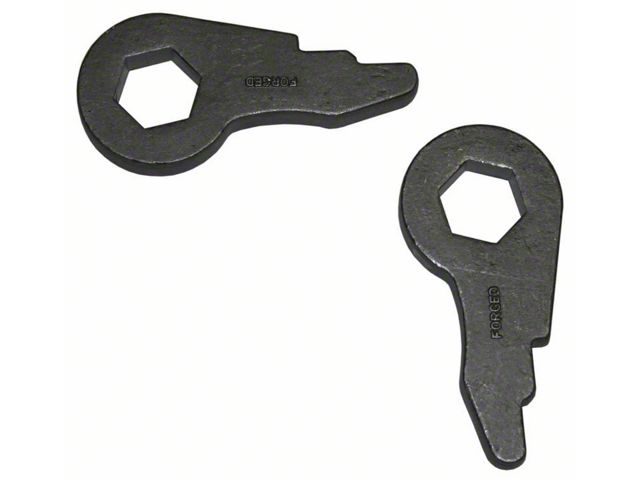 Forged torsion key kits consist of a set of re-engineered forged torsion adjustment keys. This design levels out the front of all torsion bar-equipped 2wd and 4wd trucks and SUVs without compromising the factory ride and allows for up to 33 in. tall tires. These Skyjacker torsion keys use superior manufacturing, materials and tolerances in order to increase the strength of these torsion keys. These tight tolerances increase the surface area contact between the torsion key and bar, increasing the strength of the overall design and improving functionality. Forged the same as OE to assure durability and longevity, not cast or machined.