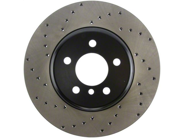 StopTech Drilled Sport Rotors are 1-piece direct replacement brake discs for factory brake systems and stock calipers that look great behind your wheels – and offer significantly improved braking performance. The unique cross-drilling aids with heat and brake dust dispersal, prevents glazing of the pads, adds bite and improves wet and dry braking performance. Built to last, the black e-coating provides protection from corrosion and the high carbon metallurgy (in most applications) offers quieter operation, better crack resistance and increased performance.