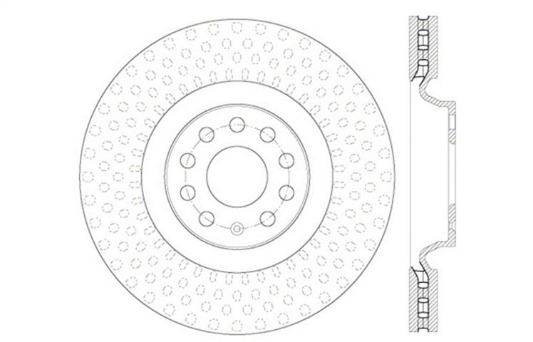StopTech Drilled Sport Rotors are 1-piece direct replacement brake discs for factory brake systems and stock calipers that look great behind your wheels and offer significantly improved braking performance. The unique cross-drilling aids with heat and brake dust dispersal; prevents glazing of the pads; adds bite and improves wet and dry braking performance. Built to last; the black e-coating provides protection from corrosion and the high carbon metallurgy (in most applications) offers quieter operation; better crack resistance and increased performance.