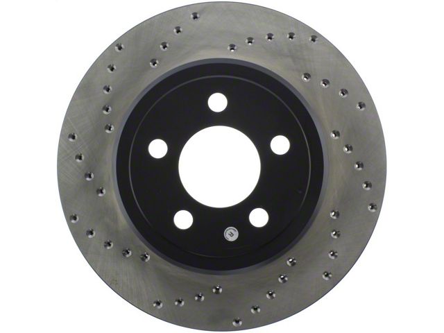 StopTech Drilled Sport Rotors are 1-piece direct replacement brake discs for factory brake systems and stock calipers that look great behind your wheels and offer significantly improved braking performance. The unique cross-drilling aids with heat and brake dust dispersal, prevents glazing of the pads, adds bite and improves wet and dry braking performance. Built to last, the black e-coating provides protection from corrosion and the high carbon metallurgy (in most applications) offers quieter operation, better crack resistance and increased performance.