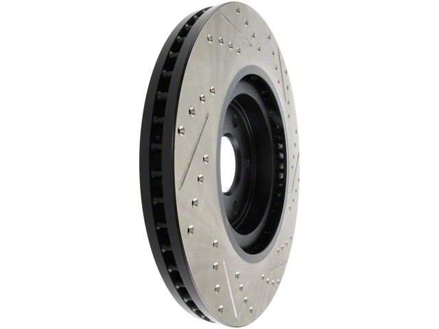 StopTech Drilled and Slotted Sport Rotors are 1-piece direct replacement brake discs for factory brake systems and stock calipers that look great behind your wheels and offer significantly improved braking performance. The unique cross-drilling and slotting aids with heat and brake dust dispersal; prevents glazing of the pads; adds bite and improves wet and dry braking performance. Built to last; the black e-coating provides protection from corrosion and the high carbon metallurgy (in most applications) offers quieter operation; better crack resistance and increased performance.