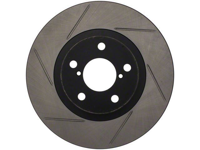 StopTech Slotted Sport Rotors are 1-piece direct replacement brake discs for factory brake systems and stock calipers that look great behind your wheels and offer significantly improved braking performance. The unique slotting aids with heat and brake dust dispersal; prevents glazing of the pads; adds bite and improves wet and dry braking performance. Built to last; the black e-coating provides protection from corrosion and the high carbon metallurgy (in most applications) offers quieter operation; better crack resistance and increased performance.