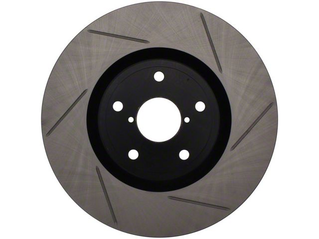 StopTech Slotted Sport Rotors are 1-piece direct replacement brake discs for factory brake systems and stock calipers that look great behind your wheels and offer significantly improved braking performance. The unique slotting aids with heat and brake dust dispersal; prevents glazing of the pads; adds bite and improves wet and dry braking performance. Built to last; the black e-coating provides protection from corrosion and the high carbon metallurgy (in most applications) offers quieter operation; better crack resistance and increased performance.