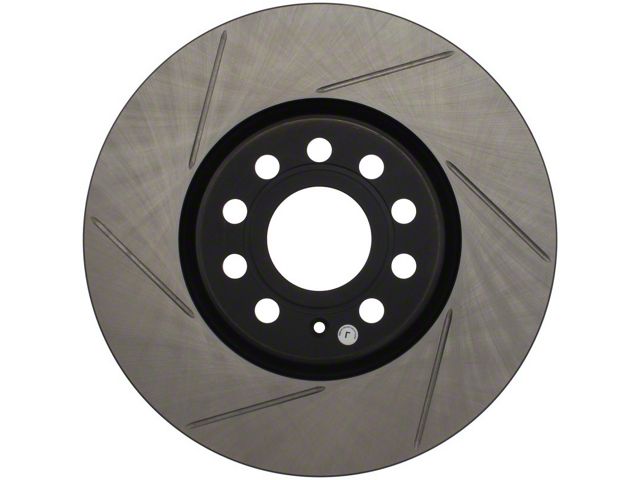 StopTech Slotted Sport Rotors are 1-piece direct replacement brake discs for factory brake systems and stock calipers that look great behind your wheels and offer significantly improved braking performance. The unique slotting aids with heat and brake dust dispersal; prevents glazing of the pads; adds bite and improves wet and dry braking performance. Built to last; the black e-coating provides protection from corrosion and the high carbon metallurgy (in most applications) offers quieter operation; better crack resistance and increased performance.