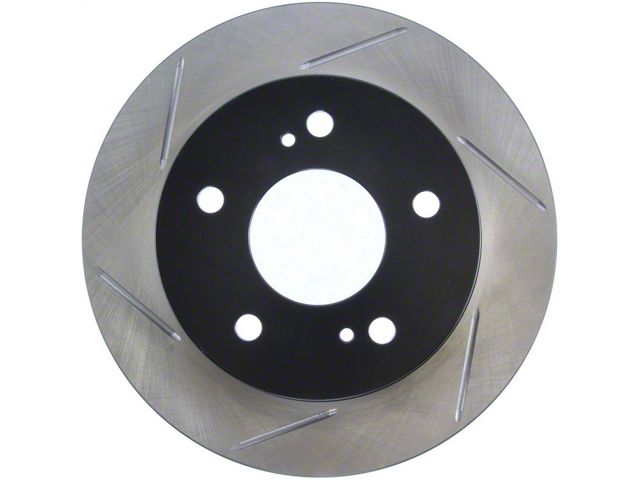 StopTech Slotted Sport Rotors are 1-piece direct replacement brake discs for factory brake systems and stock calipers that look great behind your wheels and offer significantly improved braking performance. The unique slotting aids with heat and brake dust dispersal; prevents glazing of the pads; adds bite and improves wet and dry braking performance. Built to last; the black e-coating provides protection from corrosion and the high carbon metallurgy (in most applications) offers quieter operation; better crack resistance and increased performance.