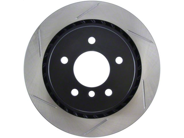 StopTech Slotted Sport Rotors are 1-piece direct replacement brake discs for factory brake systems and stock calipers that look great behind your wheels and offer significantly improved braking performance. The unique slotting aids with heat and brake dust dispersal; prevents glazing of the pads; adds bite and improves wet and dry braking performance. Built to last; the black e-coating provides protection from corrosion and the high carbon metallurgy (in most applications) offers quieter operation; better crack resistance and increased performance.
