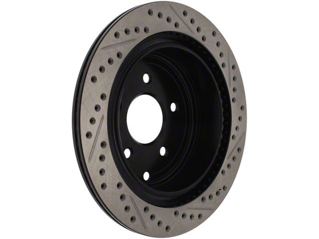 StopTech Drilled and Slotted Sport Rotors are 1-piece direct replacement brake discs for factory brake systems and stock calipers that look great behind your wheels and offer significantly improved braking performance. The unique cross-drilling and slotting aids with heat and brake dust dispersal, prevents glazing of the pads, adds bite and improves wet and dry braking performance. Built to last, the black e-coating provides protection from corrosion and the high carbon metallurgy (in most applications) offers quieter operation, better crack resistance and increased performance.