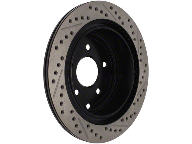 StopTech Drilled and Slotted Sport Rotors are 1-piece direct replacement brake discs for factory brake systems and stock calipers that look great behind your wheels and offer significantly improved braking performance. The unique cross-drilling and slotting aids with heat and brake dust dispersal, prevents glazing of the pads, adds bite and improves wet and dry braking performance. Built to last, the black e-coating provides protection from corrosion and the high carbon metallurgy (in most applications) offers quieter operation, better crack resistance and increased performance.