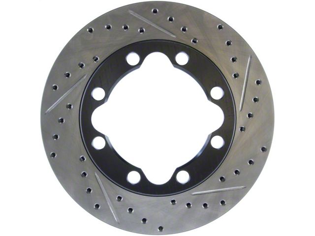 StopTech Drilled and Slotted Sport Rotors are 1-piece direct replacement brake discs for factory brake systems and stock calipers that look great behind your wheels and offer significantly improved braking performance. The unique cross-drilling and slotting aids with heat and brake dust dispersal, prevents glazing of the pads, adds bite and improves wet and dry braking performance. Built to last, the black e-coating provides protection from corrosion and the high carbon metallurgy (in most applications) offers quieter operation, better crack resistance and increased performance.