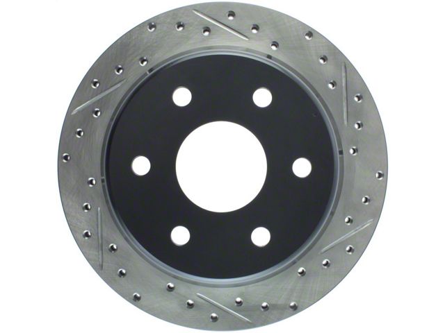 StopTech Drilled and Slotted Sport Rotors are 1-piece direct replacement brake discs for factory brake systems and stock calipers that look great behind your wheels and offer significantly improved braking performance. The unique cross-drilling and slotting aids with heat and brake dust dispersal, prevents glazing of the pads, adds bite and improves wet and dry braking performance. Built to last, the black e-coating provides protection from corrosion and the high carbon metallurgy (in most applications) offers quieter operation, better crack resistance and increased performance.