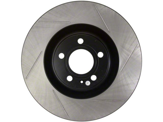 StopTech Slotted Sport Rotors are 1-piece direct replacement brake discs for factory brake systems and stock calipers that look great behind your wheels and offer significantly improved braking performance. The unique slotting aids with heat and brake dust dispersal; prevents glazing of the pads; adds bite and improves wet and dry braking performance. Built to last; the black e-coating provides protection from corrosion and the high carbon metallurgy (in most applications) offers quieter operation; better crack resistance and increased performance.