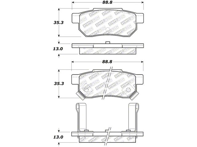 StopTech Street Select Brake Pads provide superior stopping power and reliability for passenger cars and light trucks. StopTech engineers have developed two application specific friction compounds; semi-metallic and ceramic that combine improved stopping performance while reducing noise and dust. StopTech Street Select Brake Pads are installation ready with High Performance shims attached to eliminate noise and vibration. OE style gas slots and chamfers optimize braking performance especially in repeat stop situations. Application specific hardware is included with each pad set ensuring full restoration of system performance and extended service life.