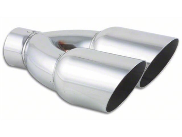 Vibrant Performance Dual Outlet, weld-on Exhaust Tips are manufactured from 304 Stainless Steel for optimum corrosion resistance. They are available with either dual round or dual oval outlets and a variety of different outlet edge profiles. All Vibrant Performance dual outlet tips are 10" long and are offered with inlet diameters ranging from 2.25" to 2.5".