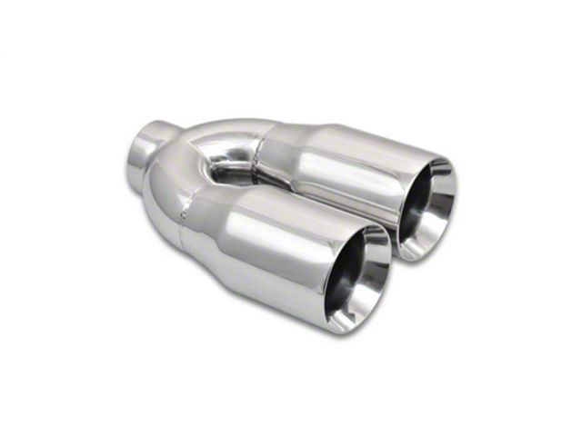 Vibrant Performance Dual Outlet, weld-on Exhaust Tips are manufactured from 304 Stainless Steel for optimum corrosion resistance. They are available with either dual round or dual oval outlets and a variety of different outlet edge profiles. All Vibrant Performance dual outlet tips are 10" long and are offered with inlet diameters ranging from 2.25" to 2.5".