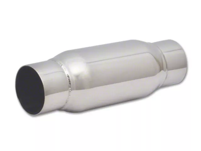 Vibrant Performance standard bottle style resonators are round bodied, densely packed with our premium multi-layered sound absorption materials, and manufactured from 304 stainless steel for optimum durability and corrosion resistance. Vibrant Performance standard bottle style resonators have a sleek design that is optimal for easy installation and work to maximize the reduction of exhaust db levels. They are available in 12" & 18" overall lengths and inlet I.D. diameters ranging from 2.25" to 4".